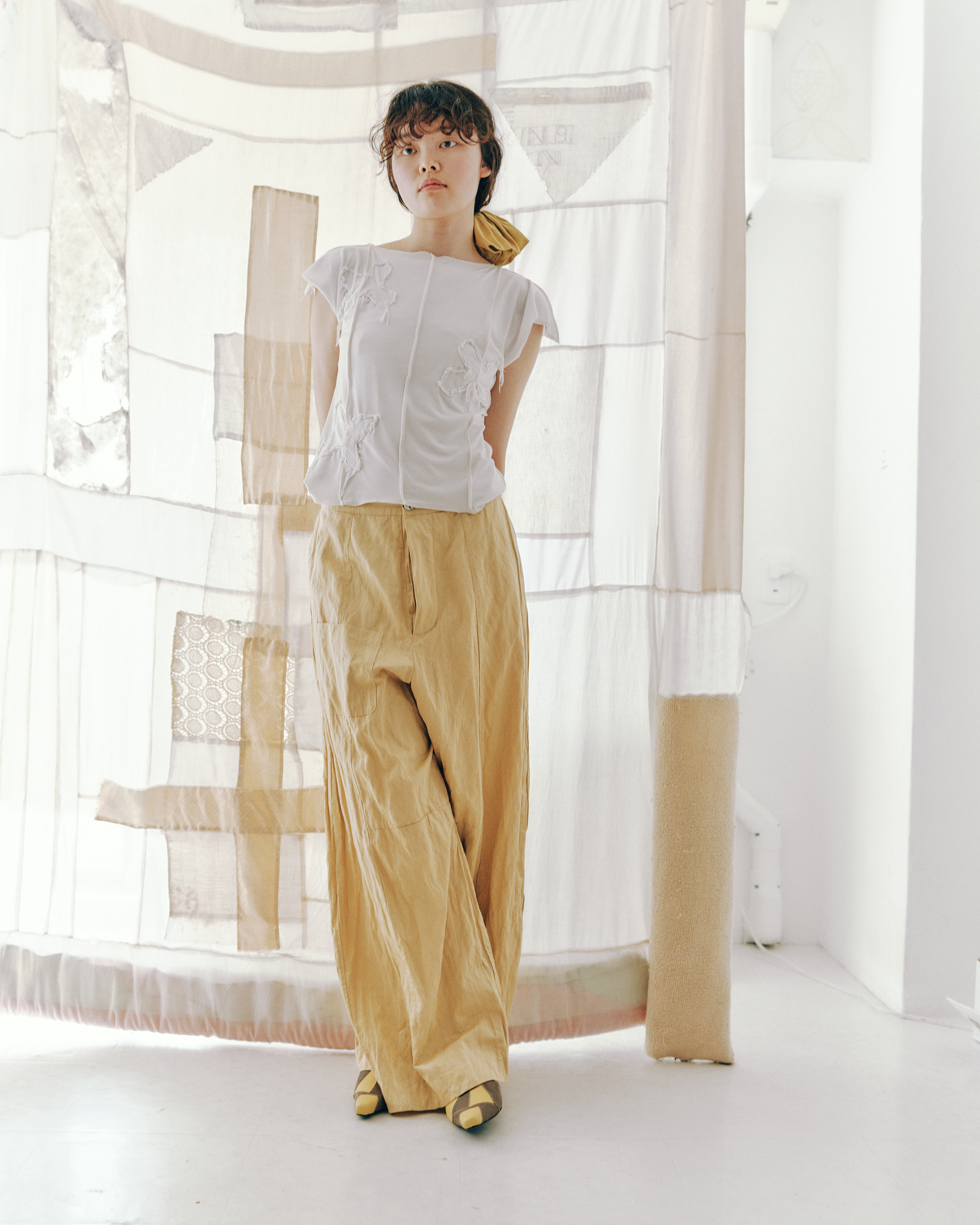 life of mou’s photographs of the linen denim cloudy day jacket and the hem pants. the life of mou shop is in lemington spa.